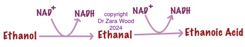 Excess ethanol is also detoxified in the liver, using the enzymes ethanol dehydrogenase and ethanal dehydrogenase. Excess consumption of ethanol can deplete NAD levels in the body, leading to a condition called ‘alcohol-related fatty liver disease’ (ArLD). ArLD, if left unchecked, can lead to cirrhosis and liver-related death.